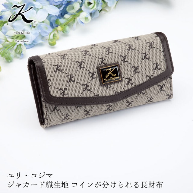 【お種銭付】 ユリ・コジマ ジャカード織生地 コインが分けられる 長財布 325906 かぶせ レディース ギフト プレゼント ユリコジマ Yuri Kojima ブラウン JP9041