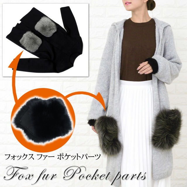 インスタグラマー様愛用 フォックス ファー 手芸 ポケット 飾り パーツ 左右ペア アクセサリー 日本製 レディース ギフト プレゼント ポケット ポケットファー コート アレンジ フェイク フェイクポケット FB5371