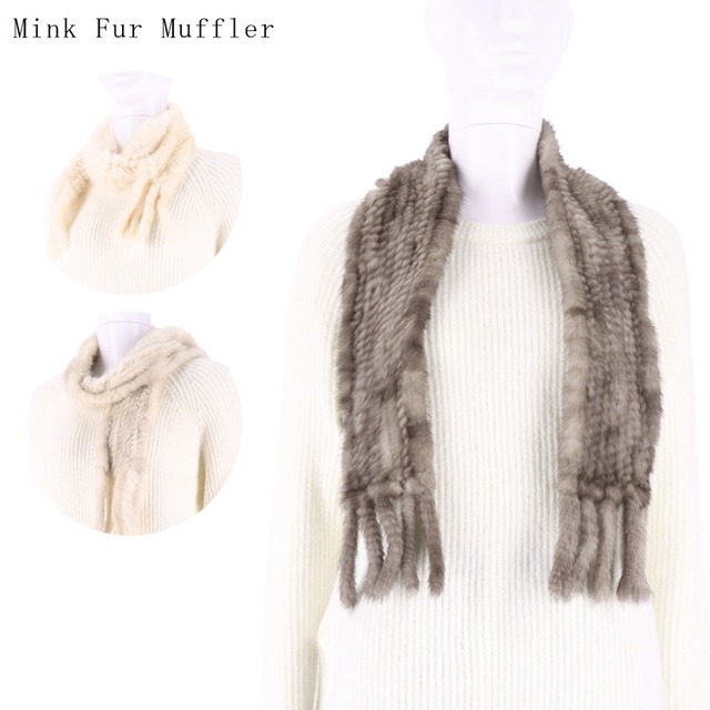 ミンク 編み込み ファー マフラー フリンジ付 送料無料 レディース ギフト プレゼント MKBK21
