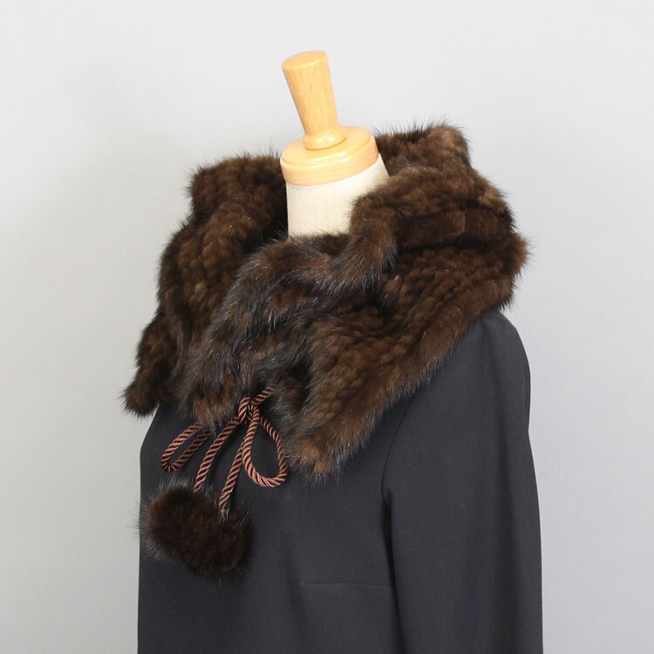 ミンク 編み込み ファー マフラー ダークブラウン 送料無料 レディース ギフト プレゼント