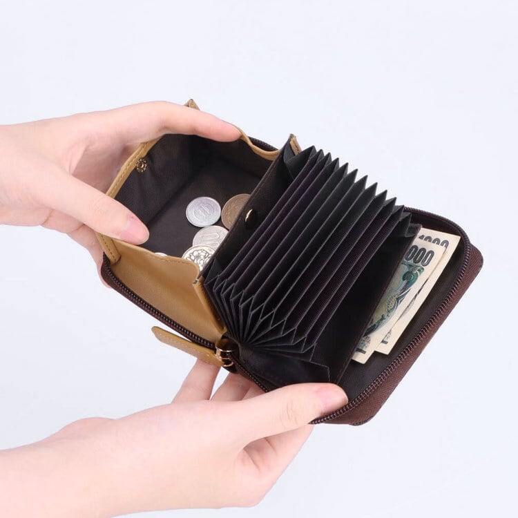 【内側収納】カードポケット×12、お札スペース×1、ボックス式小銭入れ×1 【外側収納】オープンポケット×1 【留め具】ファスナー 【裏地】有り 【素材】合成皮革 【生産国】中国