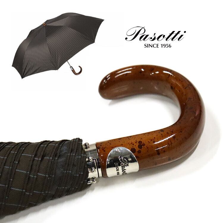 Pasotti 雨傘 折りたたみ傘 ブラウン ストライプ クラシック 高級傘 ジャンプ傘 頑丈 大きめサイズ イタリア製 ハンドメイド オシャレ シンプル メンズ PS14