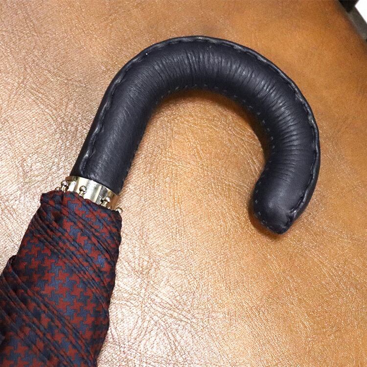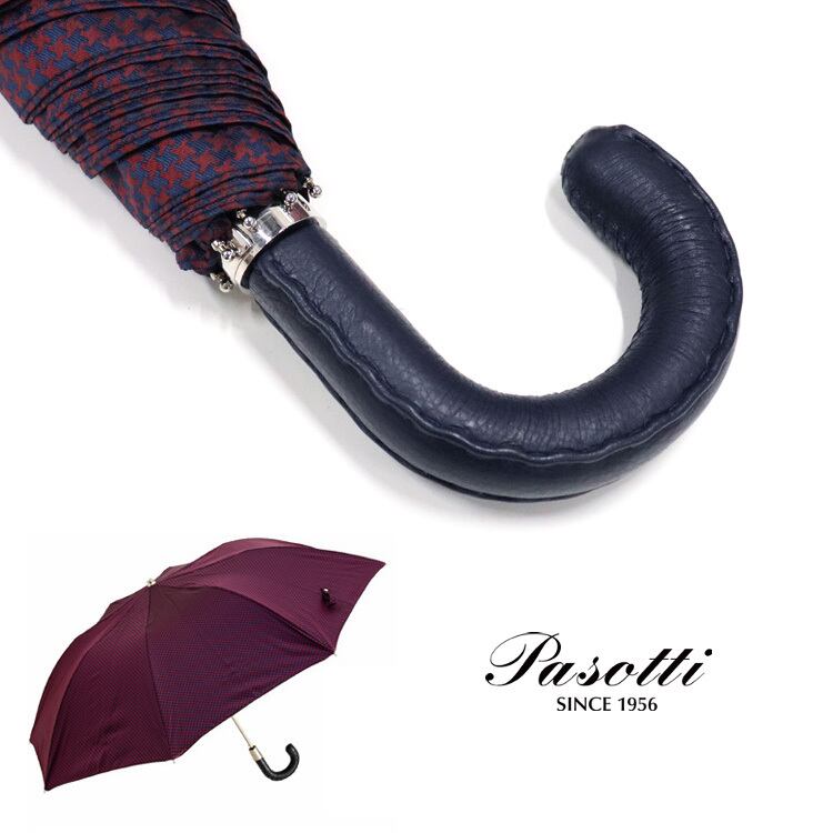 Pasotti 雨傘 折りたたみ傘 ネイビー レッド 千鳥格子 レザー ハンドル 高級傘 ジャンプ傘 頑丈 大きめサイズ イタリア製 ハンドメイド オシャレ シンプル メンズ レディース ギフト プレゼント 紳士用 PS09