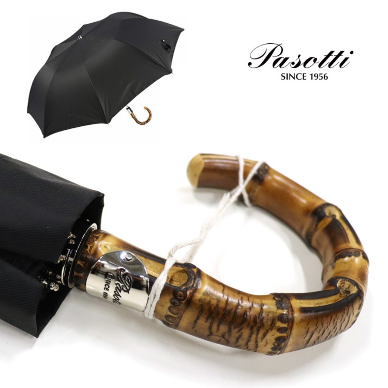 Pasotti 雨傘 折りたたみ傘 ブラック バンブー ハンドル 高級傘 ジャンプ傘 頑丈 大きめサイズ イタリア製 ハンドメイド オシャレ シンプル 無地 メンズ レディース ギフト プレゼント PS05