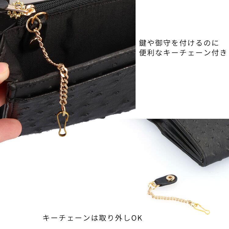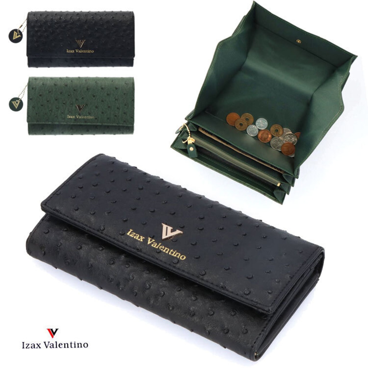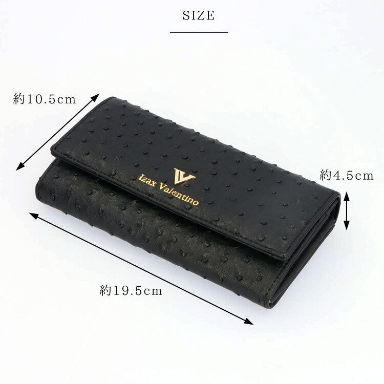 【お種銭付】 アイザック・バレンチノ 長財布 ギャルソン 4092 かぶせ 大容量 オーストリッチ型押し キーチェーン付き 合皮 メンズ レディース ギフト プレゼント アイザックバレンチノ Izax Valentino