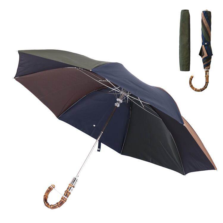 装身具としての傘。豊富なデザイン、スタイル、ハンドルのコレクションを誇る、他に類を見ない「Pasotti」イタリア国内で製造された唯一無二の傑作。高級感ある質感と深みのある色合いをしたバンブーハンドルが、傘全体の印象を洗練しています。シックなレインボーカラーとマッチし、美しい傘となっております。プッシュで開け閉めできるジャンプ傘ですがデザインを損なわないボタン。傘袋の底には穴が開いていて水抜きができ、見た目だけではない機能性を兼ね備えた紳士の高級傘です。