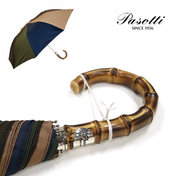 Pasotti 雨傘 折りたたみ傘 レインボー バンブー ハンドル 高級傘 ジャンプ傘 頑丈 大きめサイズ イタリア製 ハンドメイド オシャレ シンプル カラフル メンズ レディース ギフト プレゼント PS04