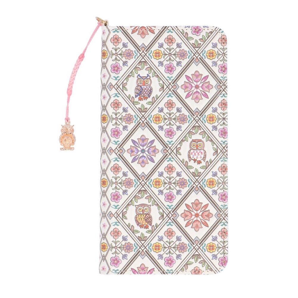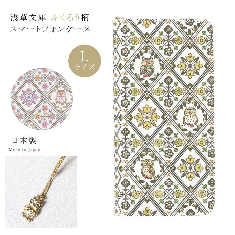 【 浅草文庫 】 スマホケース ラージサイズ ふくろう 黄金 ピンク ゴールド フクロウ 梟 大きめ オリジナル根付 チャーム付き ストラップ 多機種対応 スマートフォン ケース iPhone Android Galaxy XPERIA 大きめ 手帳型 江戸小紋 不苦労 レザー 牛革 ギフト プレゼント CLSLF1