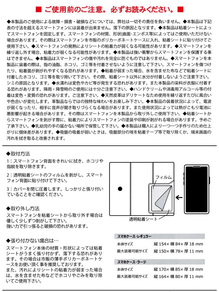 iPhone Android Galaxy XPERIA 多機種対応 推奨16×8cm以下 手帳型 粘着パッド方式なので、16×8cmまでのスマートフォンでお使い頂けます。