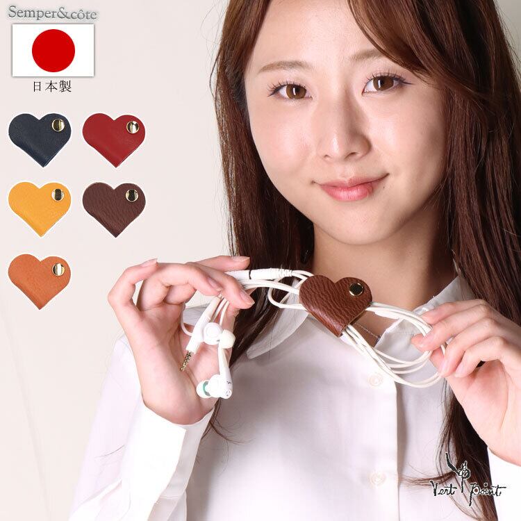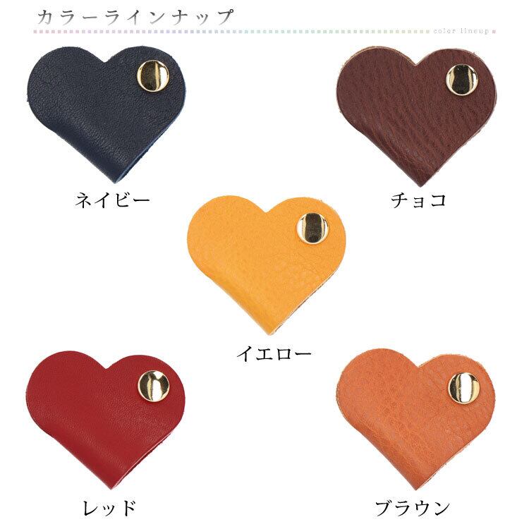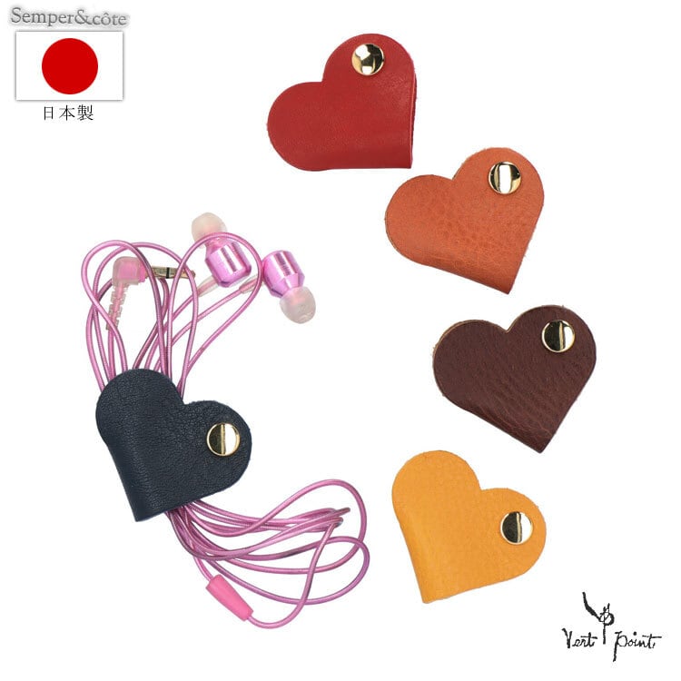 日本製 レザー ハート形コードホルダー 本革 Semper&cote イタリアンレザー 牛革 イヤホンホルダー コードクリップ ケーブルクリップ ケーブルホルダー かわいい レディース メンズ ギフト プレゼント VP-26 ブラウン チョコ イエロー レッド ネイビー CLVP26