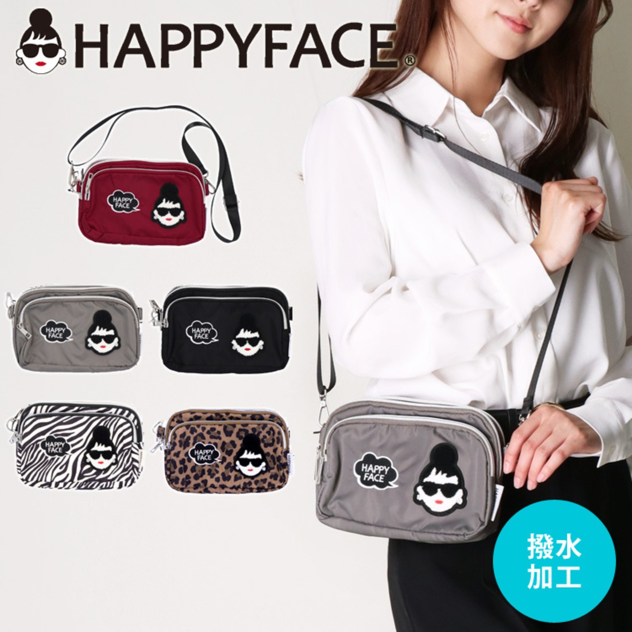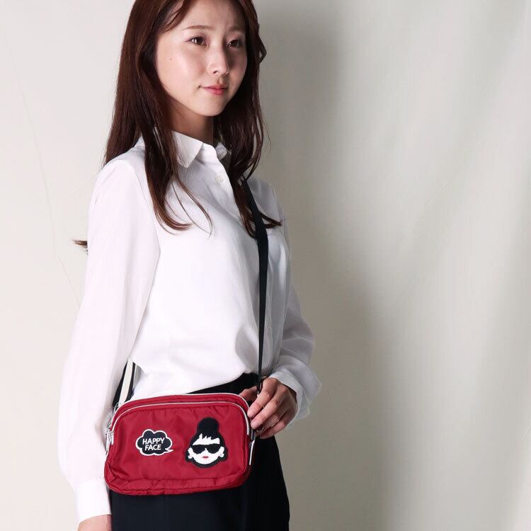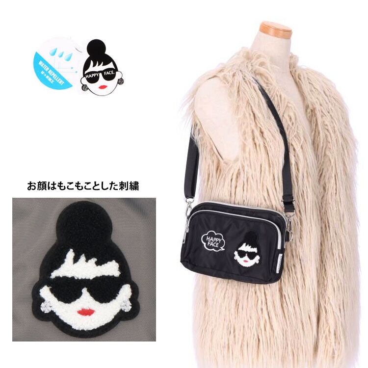 HAPPY FACE EMMA ショルダーバッグ 相良刺繍 お顔 サングラス LADY 撥水加工 軽量 2wayショルダー バッグ ミニ 小さめ バイカラー レディース ギフト プレゼント 撥水 オシャレ かわいい 88024-031242 ブラック レッド グレー PV8824