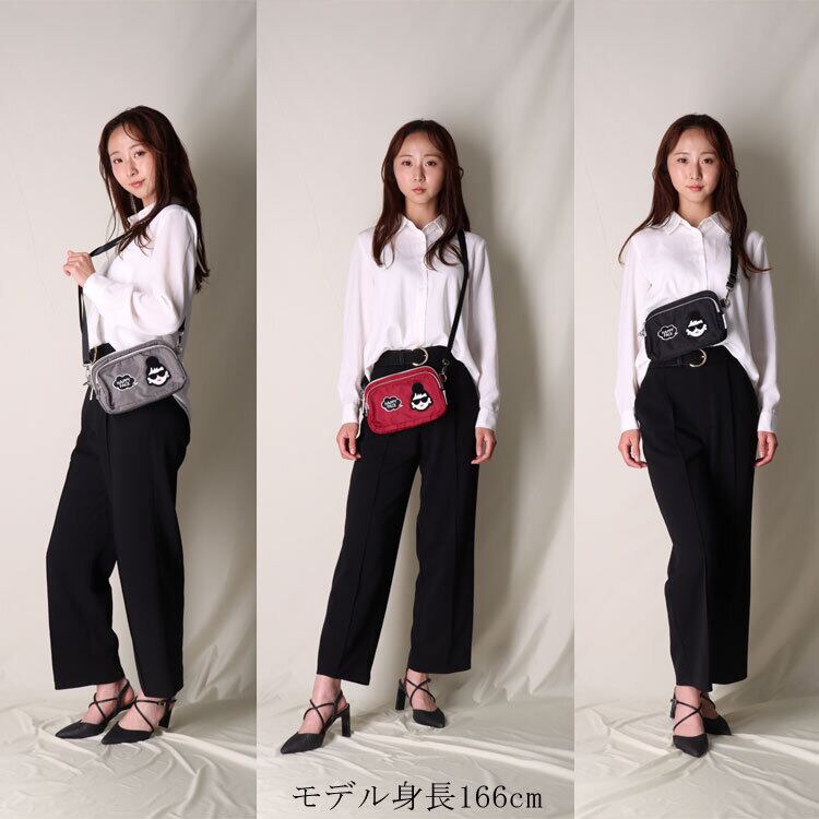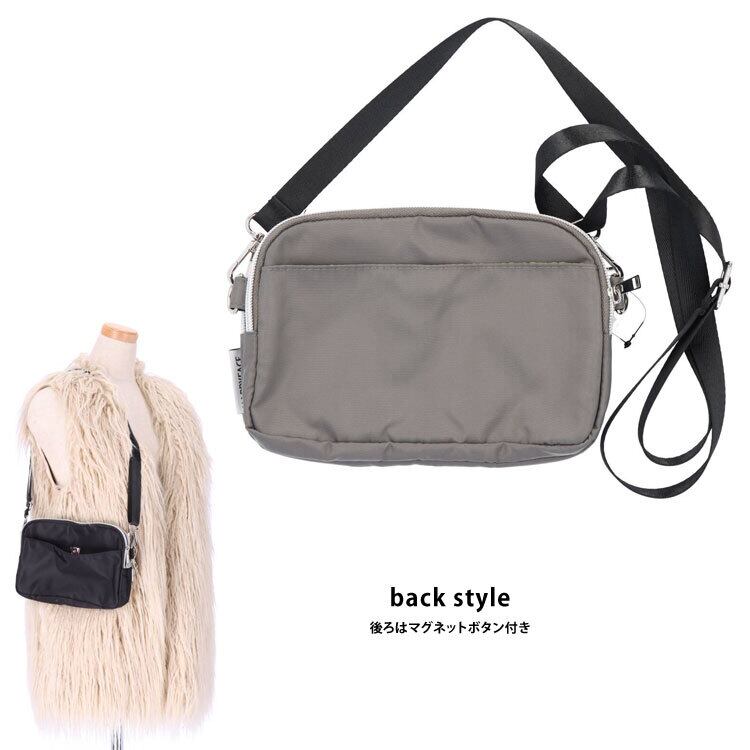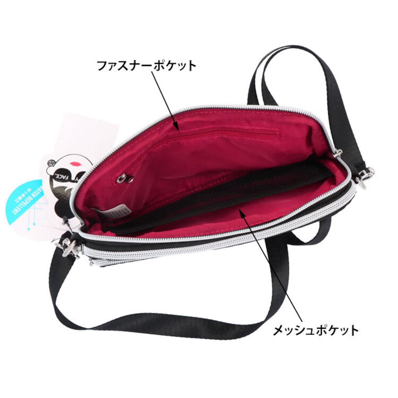 【サイズ(最大部を計測)】縦幅約15cm 横幅約22cm マチ約5cm ショルダーベルト長さ約80cmから144cm 【重さ】約79g 【収納】3室(内1室にメッシュポケット×1、ファスナーポケット×1)、背面マグホックポケット×1 【留め具】ファスナー 【素材】ナイロン
