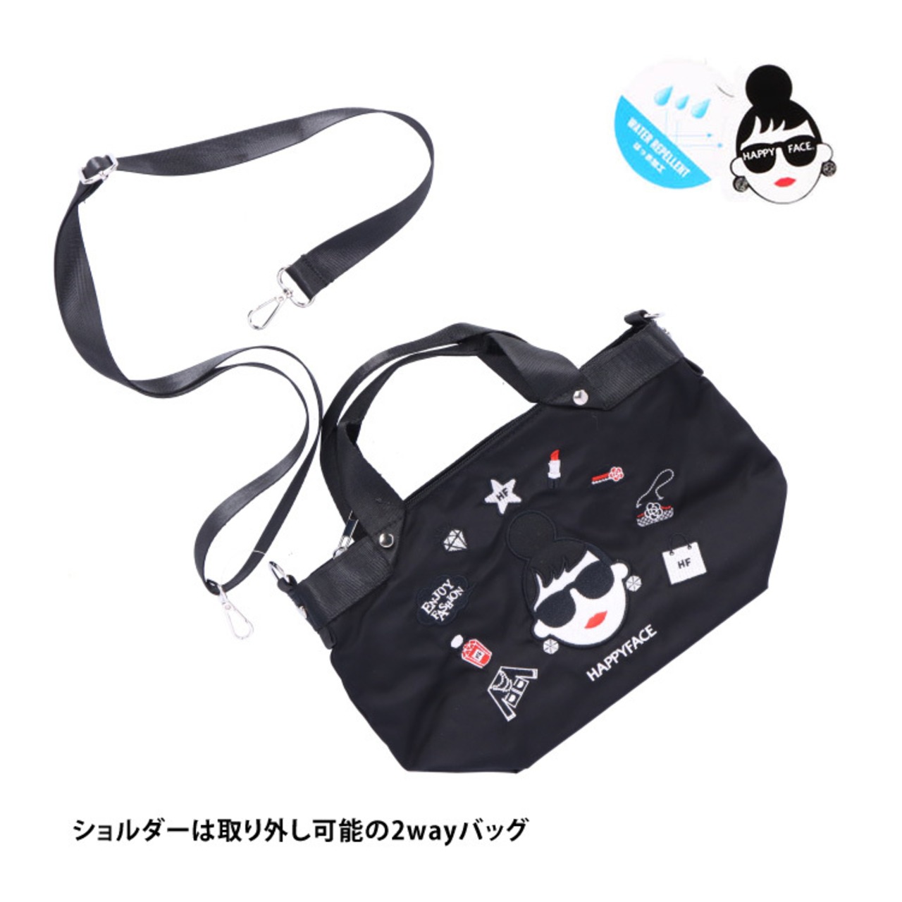 HAPPY FACE EMMA 2wayショルダーバッグ 刺繍 多機能 お顔 サングラス LADY 撥水加工 軽量 ショルダーバッグ 2wayバッグ お財布バッグ お財布ショルダー レディース ギフト プレゼント 撥水 オシャレ かわいい 88025 ブラック グレー レッド お種銭付 PV8802