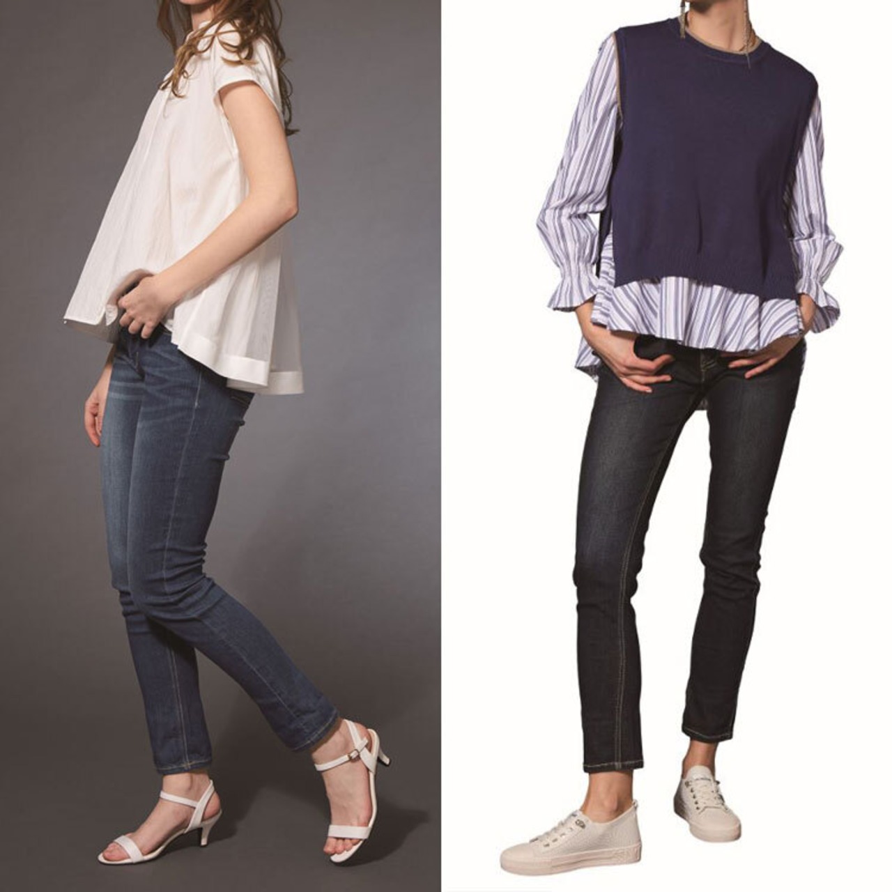 「スキニーほどタイトすぎず、テーパードほどもたつかない」ちょうどいいバランスが魅力のスリムテーパードデニム。