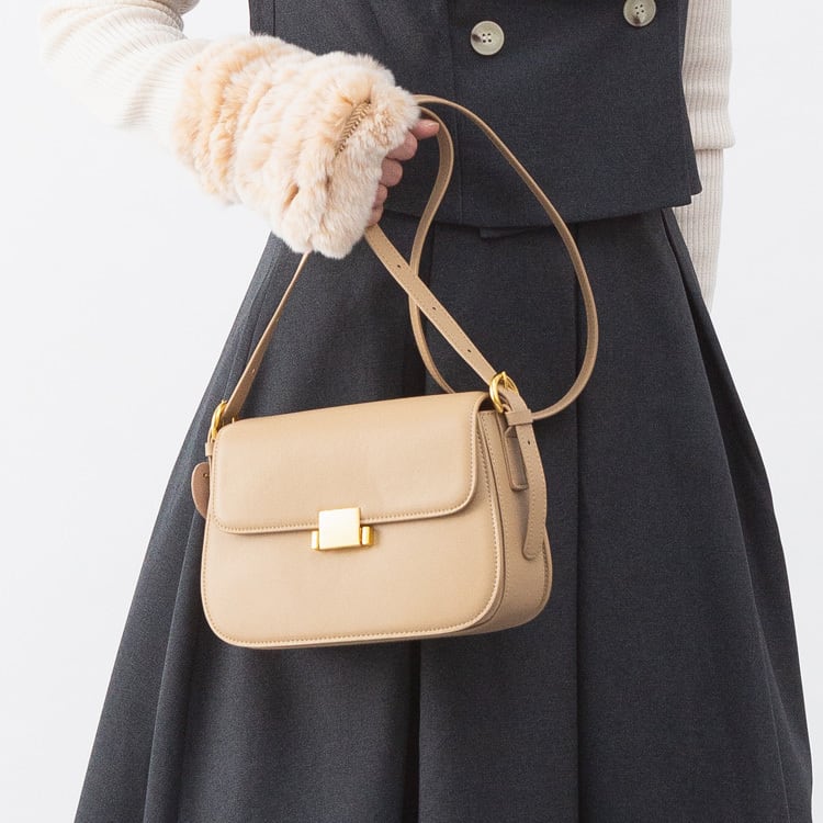 ポケットがたくさんある収納上手でオシャレな2wayバッグ。高級感のあるゴールドの金具がポイントに。コンパクトながらも使い心地抜群。ショルダーベルトは付け替え&調節可能なので贈り物としてもオススメです。