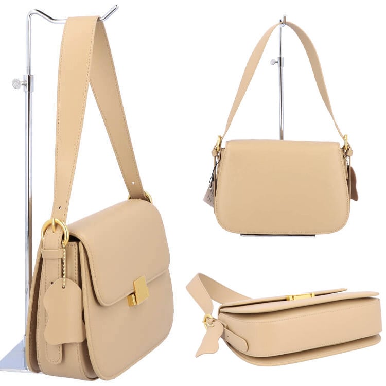 【サイズ(最大部を計測)】縦幅約15.5cm 横幅約22.5cm マチ幅約8cm ハンドル長さ約43cmから63cm ショルダー長さ約83.5cmから114cm 【重さ】本体約540g + ショルダーベルト約40g 【内側収納】4層仕切り(メイン部オープンポケット×1、ファスナーポケット×1) 【内側収納】無し 【留め具】プッシュロック 【裏地】有り 【素材】牛革 【生産国】中国