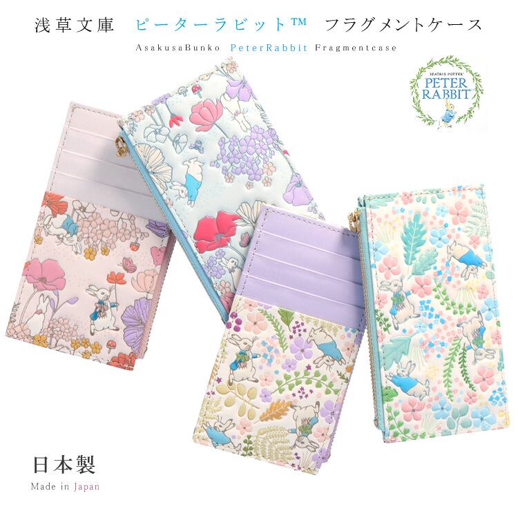 【お種銭付】 【 浅草文庫 】 ピーターラビットTM フラグメントケース 小銭入れ コインケース カードケース カード入れ ミニ財布 イングリッシュガーデン リニアメドウ 薄い スリム 花柄 フラワー 友禅染 文庫革 送料無料 江戸小紋 レザー 牛革 レディース ギフト プレゼント