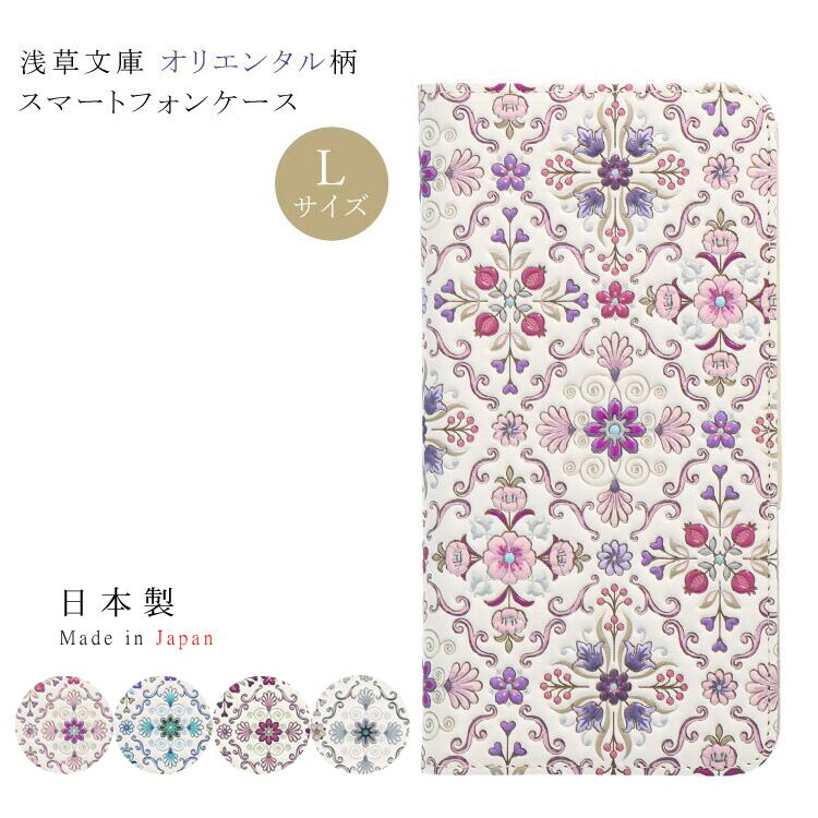 【 浅草文庫 】 スマホケース ラージサイズ オリエント 手帳型 スマートフォン ケース 友禅染 iPhone Android Galaxy XPERIA 多機種対応 大きめ 江戸小紋 送料無料 レザー 牛革 レディース ギフト プレゼント