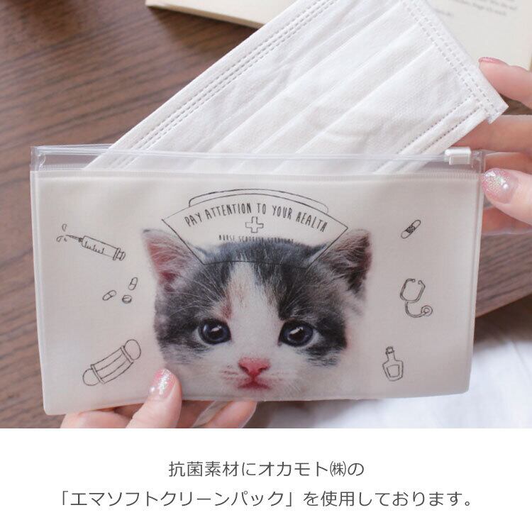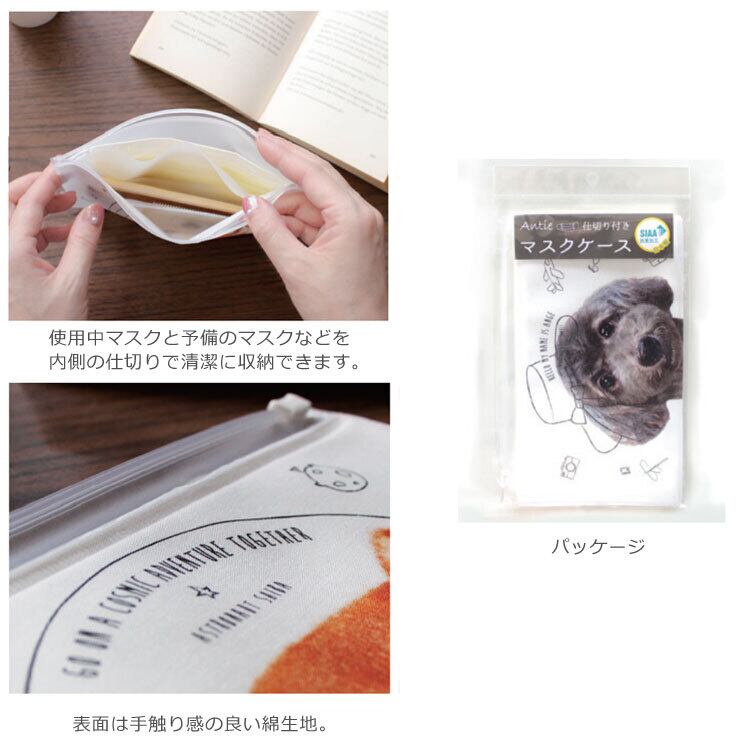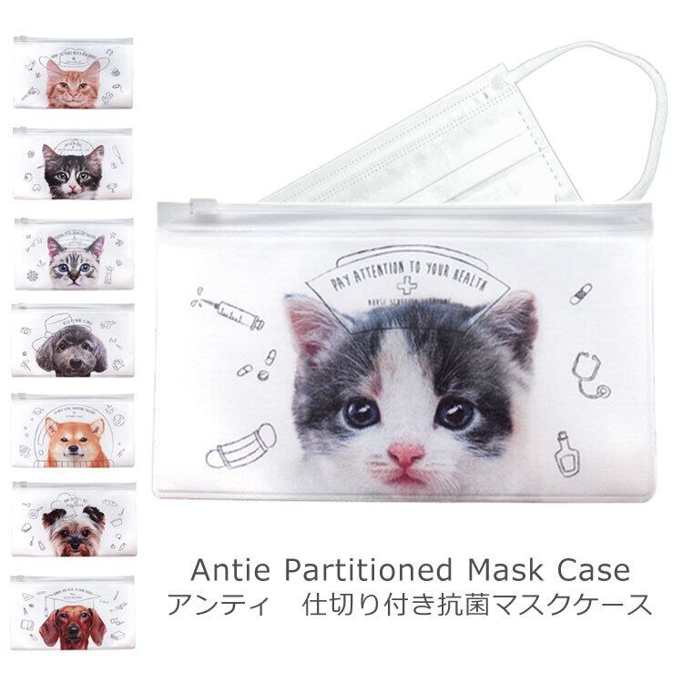 ■Antie アンティ 仕切り付き抗菌マスクケース■様々な職業に扮した可愛いイヌ・ネコ達をプリント。マスクは 4 枚程度収納できます (不織布マスク175×95mmを基準)。内側にオカモト製の抗菌素材「エマソフトクリーンパック」を使用しているので、マスクを清潔に保ち、スライド式のシールチャックで中身が飛び出すことなく持ち運べます。