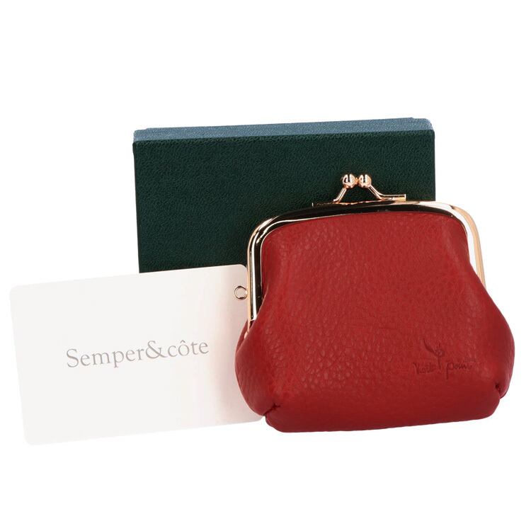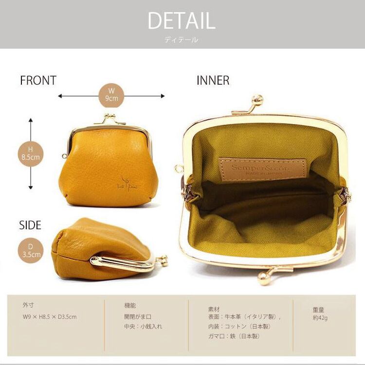 大人可愛い「がま口財布」をお探しのあなたへ。イタリアンレザーを使い、日本の革職人が丁寧に仕上げた上品ながま口コインケースです。上質なカウ(牛本革)レザーは手にしっとりと馴染み、経年による風合いの変化も楽しめます。日本製ならではの丁寧な縫製、気の利いた機能がうれしい。上品な雰囲気の中にも可愛らしさを感じさせられます。国内ライセンスブランドの「Semper&cote」