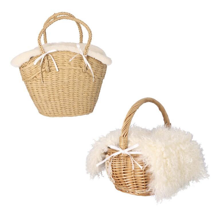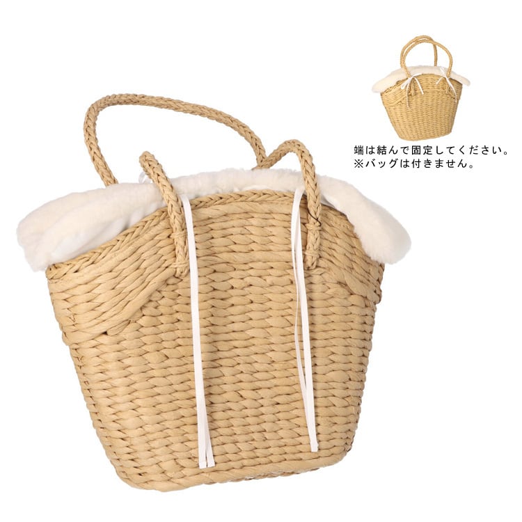 ラムファーのバッグカバーパーツです(※バッグは付属しません)。ラグジュアリーなラムファーのバッグ用カバー(フタ)。お気に入りのカゴバッグや、飽きてしまったバッグなどに付けてみてはいかがでしょうか。ボリューム感がありふわふわの触り心地。鞄の持ち手に結ぶだけなので、取り付けも簡単です。持ち手が2本のバスケットなどにおすすめ。
