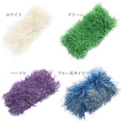 【サイズ(最大部を計測)】毛を含む:縦幅約18から30cm 横幅約36から52cm、(ブラウン・オフホワイト)毛を含む:縦幅約18から23cm 横幅約36から41cm / 裏地のみ:縦幅約17cm 横幅約38cm、(ブラウン・オフホワイト)裏地のみ:縦幅約17cm 横幅約35.5cm / 取り付け用ヒモ:約25cm(×8本) 【重さ】約55から75g 【留め具】4箇所で紐結び 【裏地】有り 【素材】毛皮:ラム / 裏地・紐:サテン生地