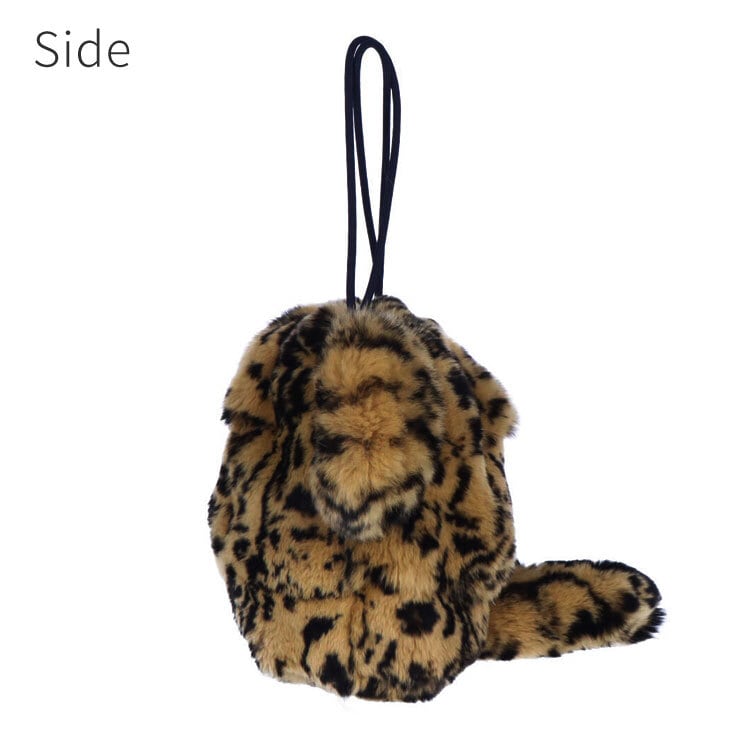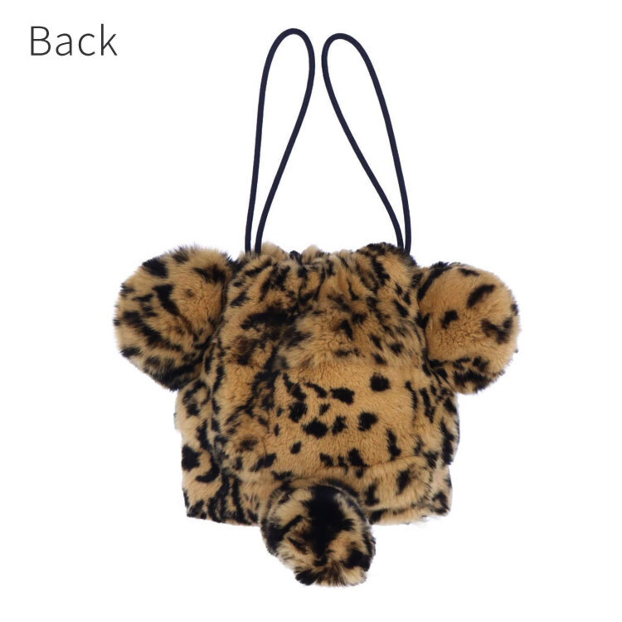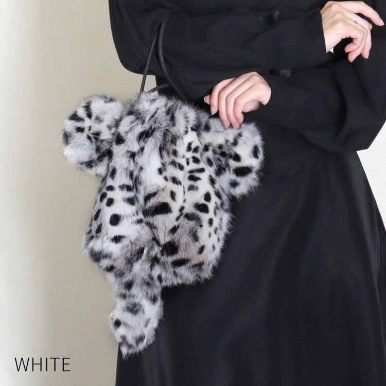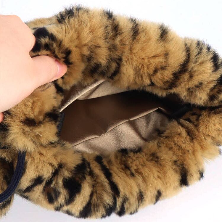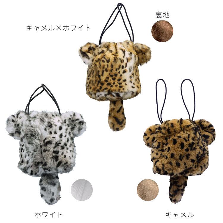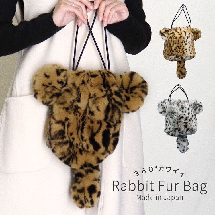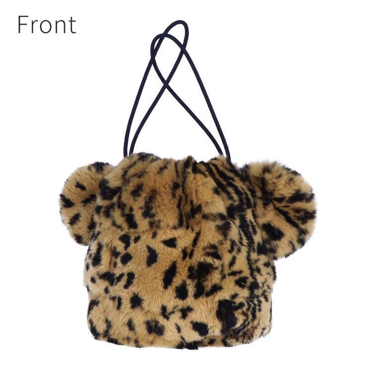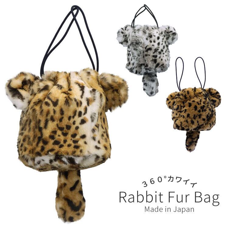 ファーバッグ ラビット リアルファー 耳付き しっぽ付き 巾着 アニマル ヒョウ柄 レオパード ミニバッグ 手提げ レディース ギフト プレゼント