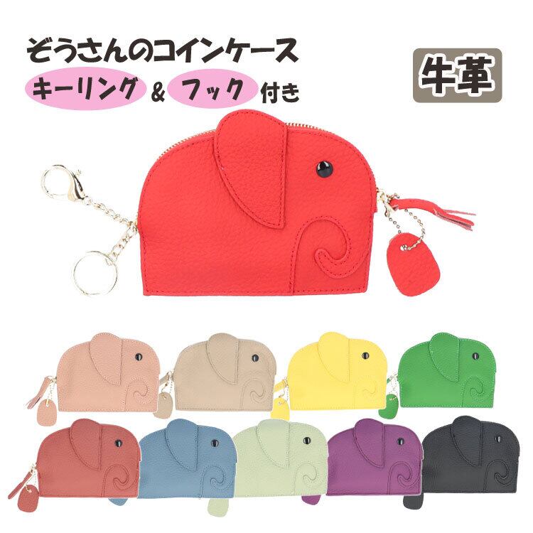 【お種銭付】 牛革 コインケース 薄型 スリム 財布 小銭入れ ゾウ キーリング付き キーケース レディース ギフト プレゼント CL8035