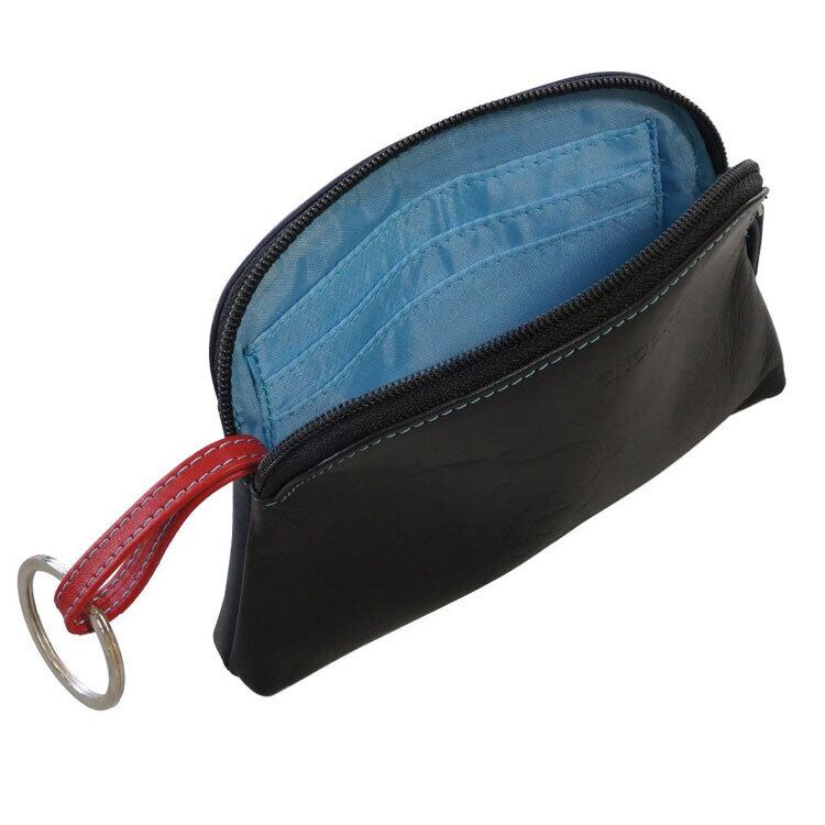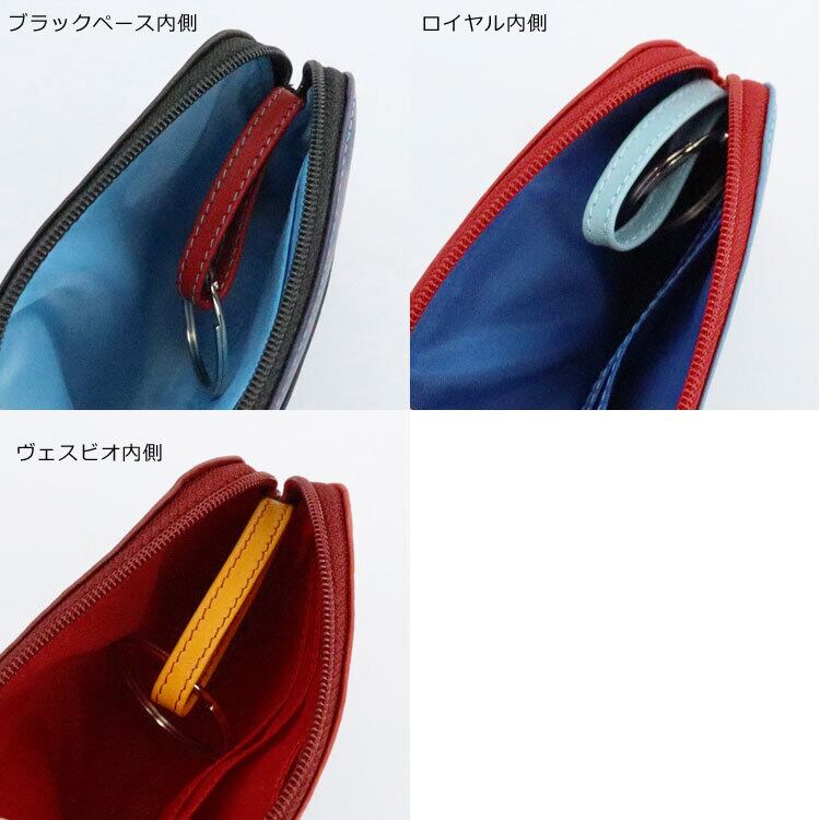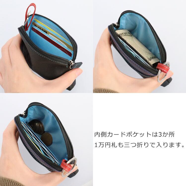 【サイズ(最大部を計測)】縦幅約9cm 横幅約13cm 厚み約1.8cm 【重さ】約40g 【内側収納】カードポケット×3、キーリング×1 【外側収納】オープンポケット×1 【留め具】ファスナー 【裏地】有り 【素材】カーフレザー(ナッパ加工)、ナイロン生地