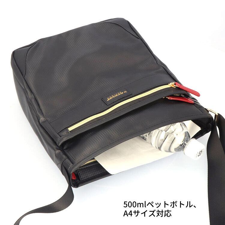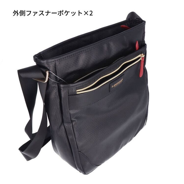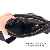 A4サイズ対応の大容量ショルダーバッグです。タブレットやペットボトルも入るメイン収納の他に、小物の仕分けに便利なファスナー付きの外ポケットも2か所。休日のお出かけから旅行まで幅広く対応します。