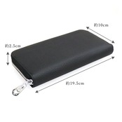 【サイズ(最大部を計測)】縦幅約10cm 横幅約19.5cm 厚み約2.5cm 【重さ】約190g 【内側収納】カードポケット×9、お札スペース×3、ファスナーポケット×1、オープンポケット×2 【外側収納】オープンポケット×2 【留め具】ラウンドファスナー 【素材】牛革、ポリエステル
