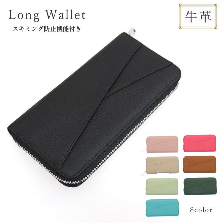 牛革で作ったオシャレなスキミング防止機能付き長財布です。すれ違っただけでカード情報が盗まれてしまう事もある「スキミング」が近年問題に。そんなスキミングを防ぐ特殊なフィルムが生地の中に入っているので大切なクレジットカード・個人情報もしっかり守ってくれます。※スキミング技術の進歩により、効果が発揮されない場合もございます。ふっくらと柔らかな牛革に、キズが目立ちにくいシボ加工を施しています。シンプルなデザインと豊富なカラーラインナップで性別を問わずお使いいただけます。
