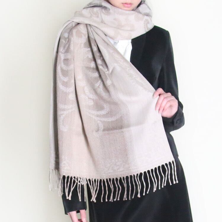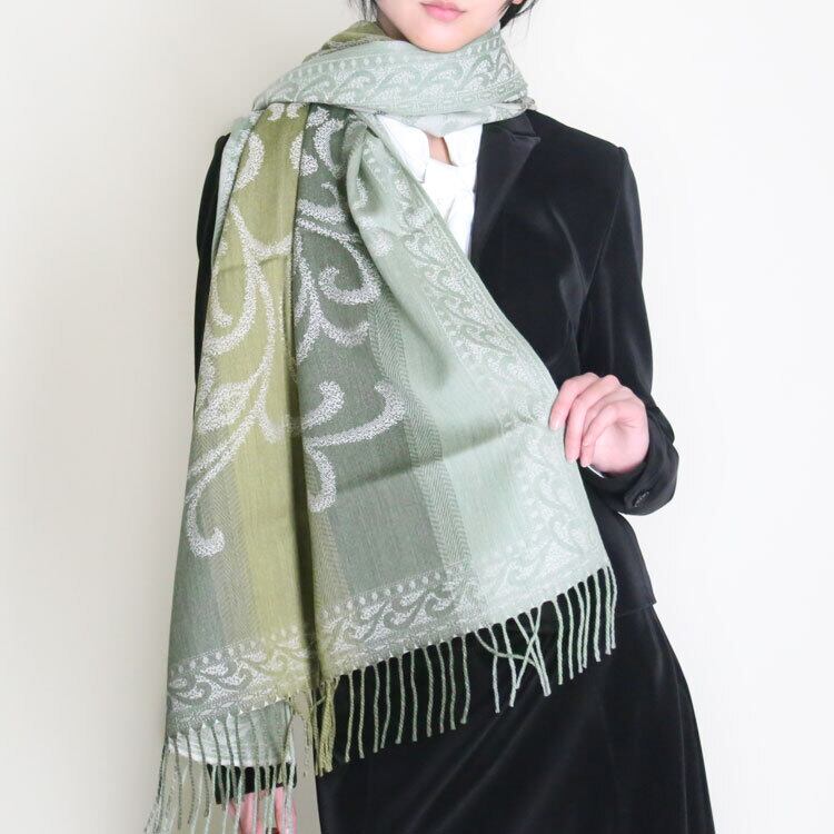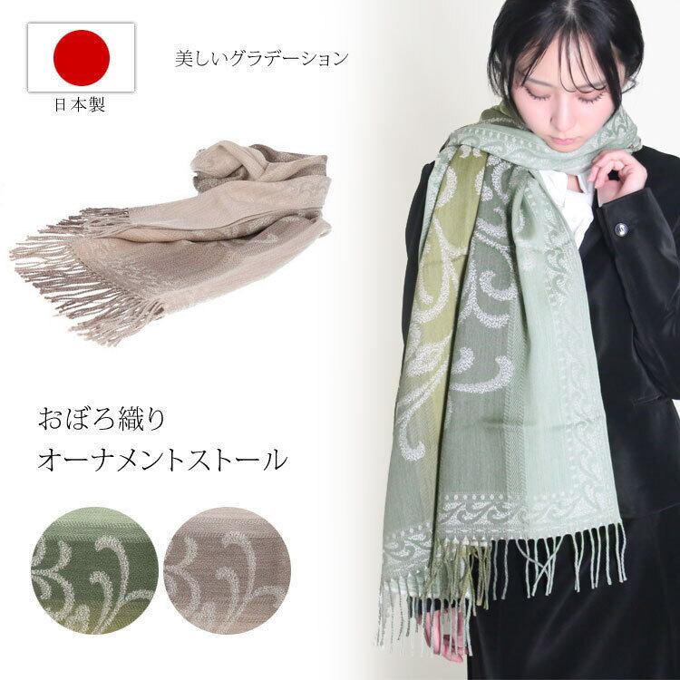 日本製 おぼろ織り ストール オーナメント柄 大判ストール グラデーション ウール100% 送料無料 レディース メンズ ギフト プレゼント グリーン カーキ ベージュ WO3571