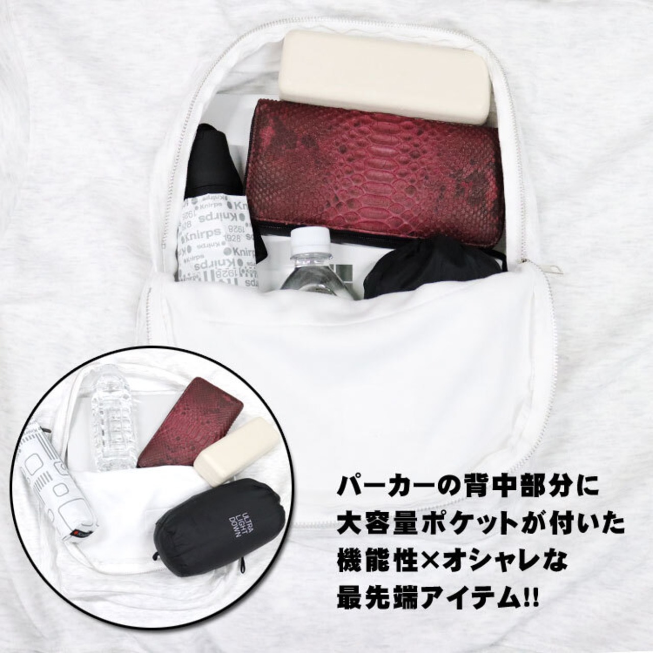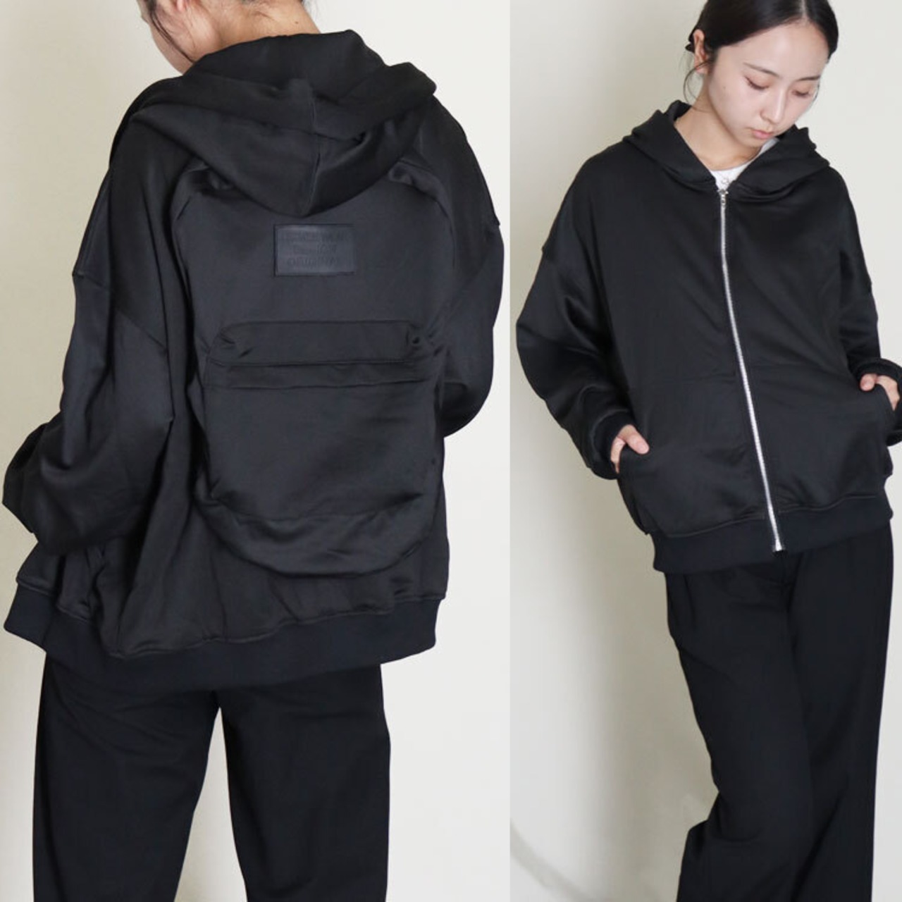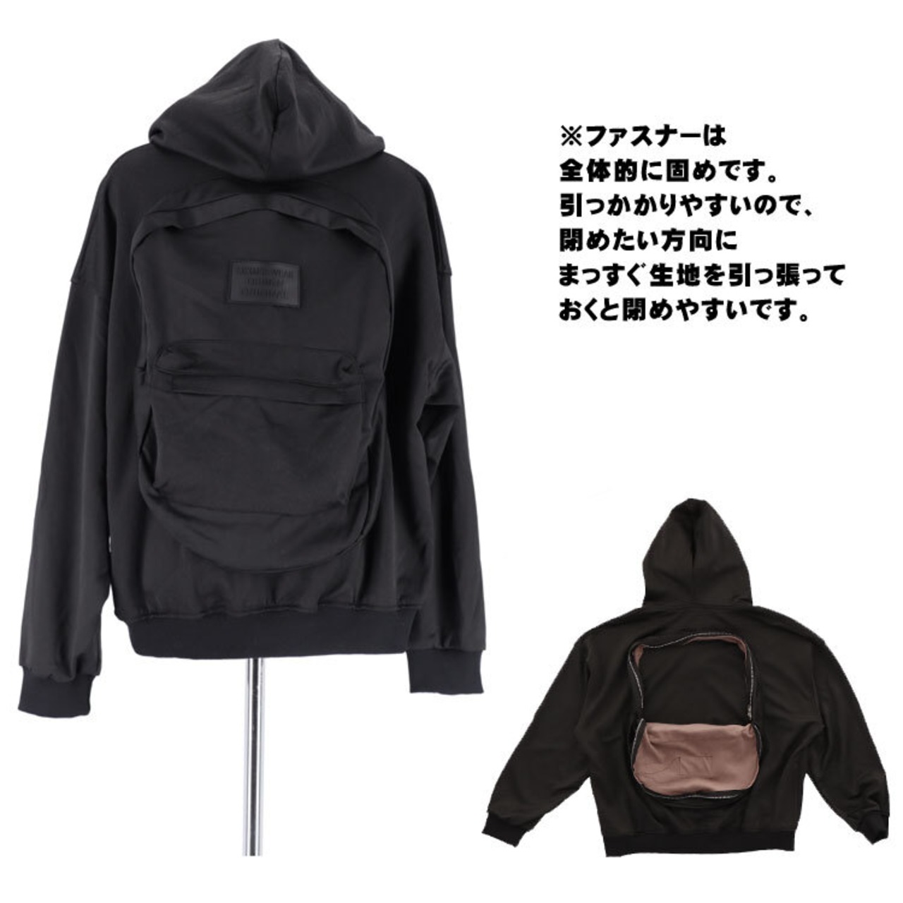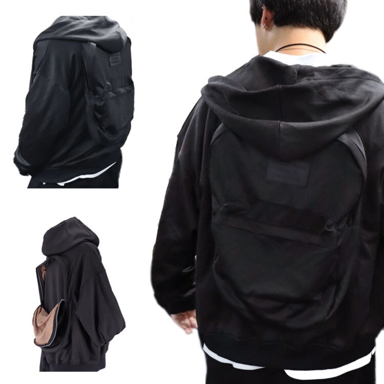 パーカー リュック フード 付き 新感覚 ホワイト ブラック メンズ レディース オーバーサイズ ドロップショルダー Mサイズ オシャレ リュックサック アウター 大容量 ビジネス 旅行 トラベル 手ぶら ユニセックス 送料無料 ギフト プレゼント