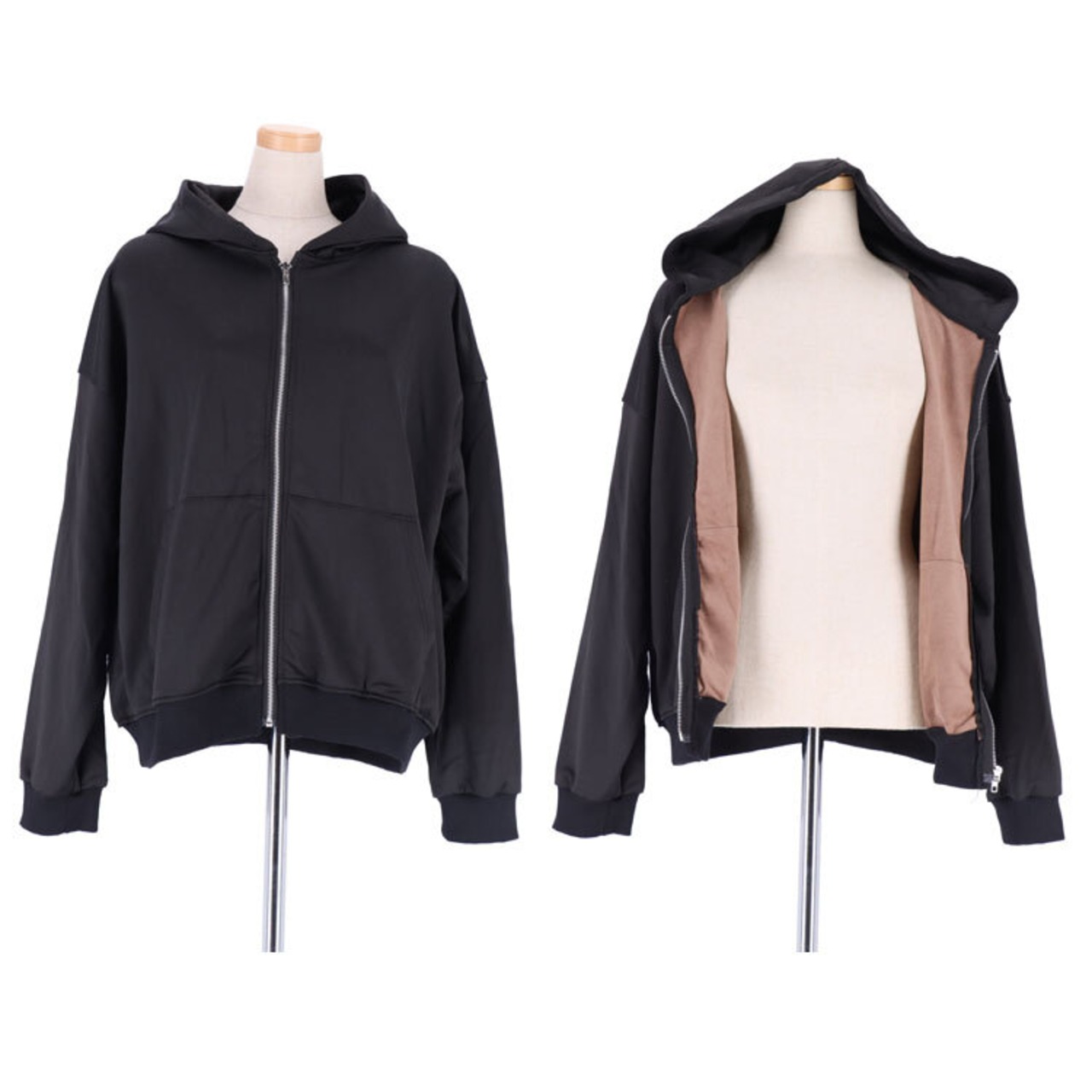 【サイズ(最大部を計測)】Mサイズ相当:着丈ホワイト約66cm・ブラック約63cm 身幅約124cm 肩幅約63cm 袖丈ホワイト約52.5cm・ブラック約51cm 【重さ】ホワイト約675g・ブラック約690g 【ポケット】前ポケット×2、背面ポケット×2 【留め具】ファスナー 【裏地】有り 【素材】ポリエステル 【生産国】中国