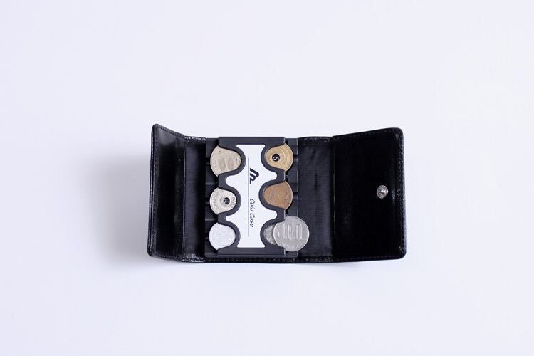 コインキャッチャーとは、「スムーズな支払い」に特化したお財布。コンビニでの買い物や、ちょっと自動販売機でコーヒーを買うとき、小銭を探すのにわずらわしい思いをしたことはありませんか?コインキャッチャーなら、コインを並べて収納できるので、瞬時にコインを好きな枚数取り出せます。とても小さいので、ポケットにすっぽり入るのも男性にはうれしいですね。内側の左右には、レシートなどが収まるフリーポケット付き。