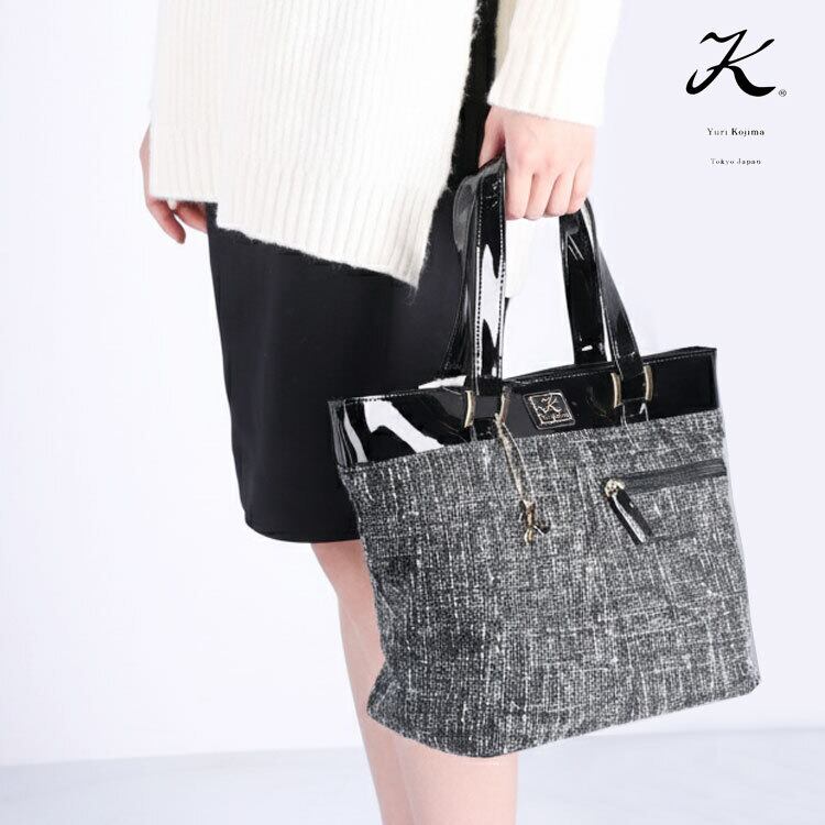 ユリ・コジマ ハンドバッグ 4086 トートバッグ ツイード調 エナメル 手提げ 肩掛け 通勤バッグ 大きめ 仕切り無し 大容量 50代 60代 バッグ Yuri Kojima ユリコジマ ギフト プレゼント PV4086