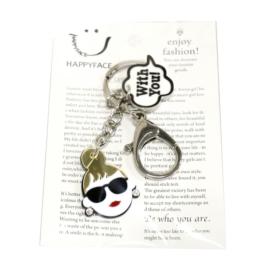 コーディネートのワンポイントになる個性的なアイテムです。バッグやお財布にチャームとして、車のキーアクセとしてなど、身近な小物に合わせて使える素敵なキーホルダー。耳元のスワロフスキークリスタルがキラキラ輝きアクセントに。「With You!」のアメコミ風吹き出しも可愛い。今話題の女性のお顔のアクキーは贈り物にもオススメです。