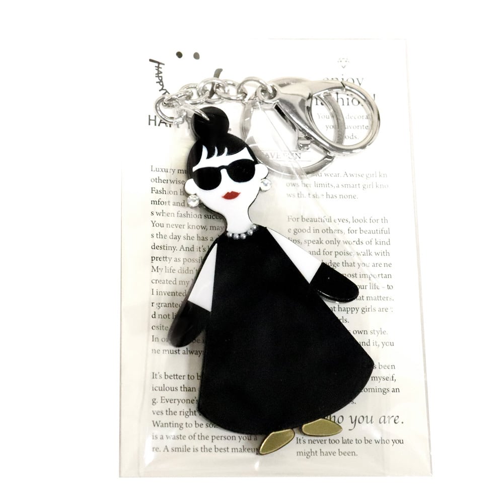 コーディネートのワンポイントになる個性的なアイテムです。バッグやお財布にチャームとして、車のキーアクセとしてなど、身近な小物に合わせて使える素敵なキーホルダー。耳元のスワロフスキークリスタルがキラキラ輝きアクセントに。今話題の女性シルエットのアクキーは贈り物にもオススメです。