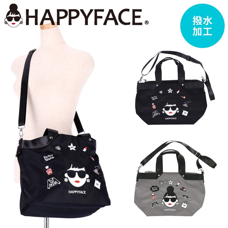 HAPPY FACE EMMA 2wayショルダーバッグ 大 刺繍 多機能 お顔 サングラス LADY 撥水加工 軽量 ショルダーバッグ 2wayバッグ お財布バッグ お財布ショルダー レディース ギフト プレゼント 撥水 オシャレ かわいい 88026 ブラック グレー お種銭付 PV8826