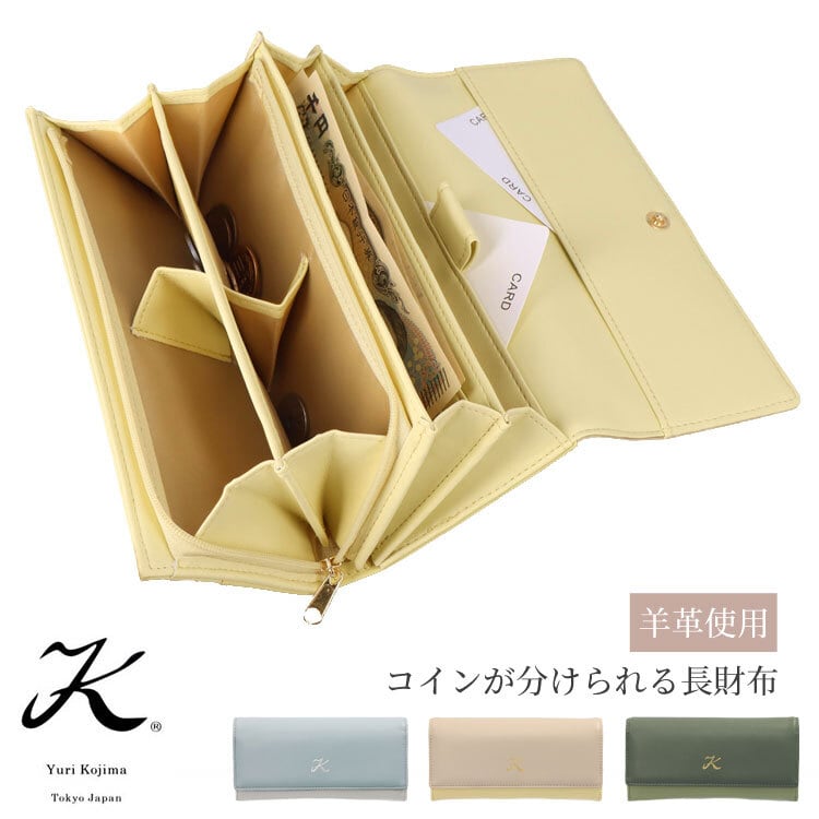 【お種銭付】ユリ・コジマ コインが分けられる 羊革 かぶせ 長財布 4413 大容量 財布 羊革使い 50代 60代 財布 Yuri Kojima ユリコジマ ギフト プレゼント ブルー ベージュ グリーン