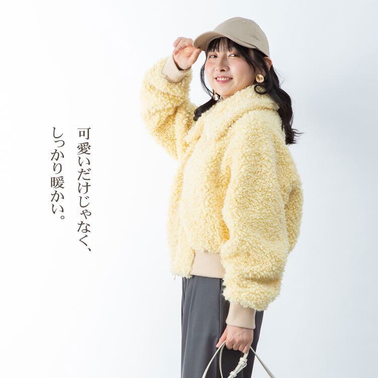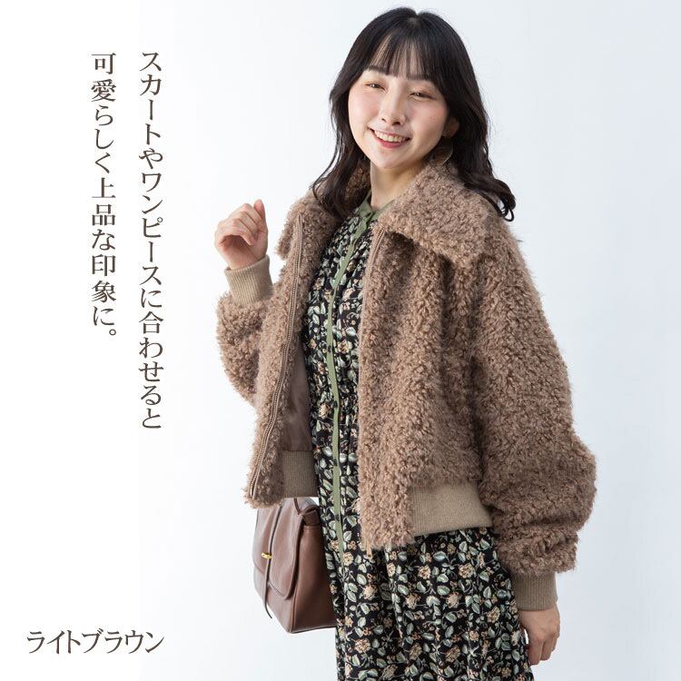 パーソナルスタイリスト コラボ エコファー ブルゾン ジャケット ラム風 イエロー ブラウン ベージュ レディース 送料無料 ギフト プレゼント POUT4B