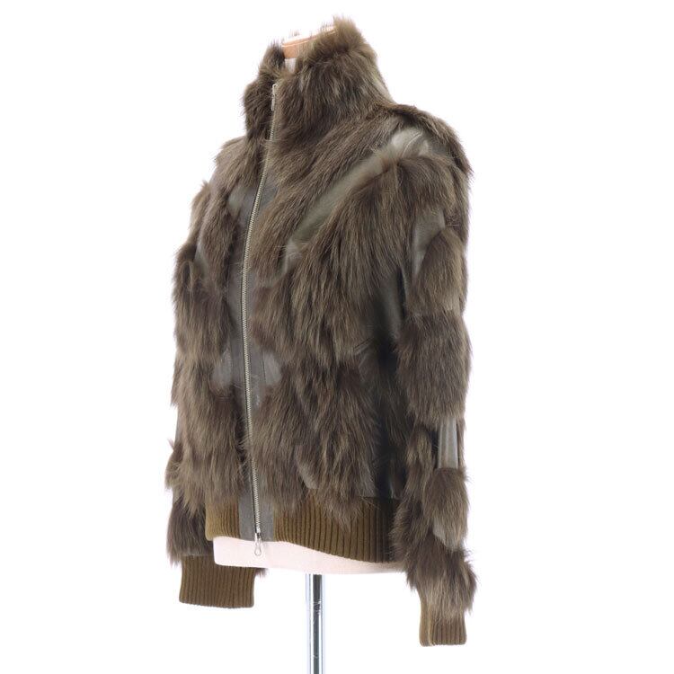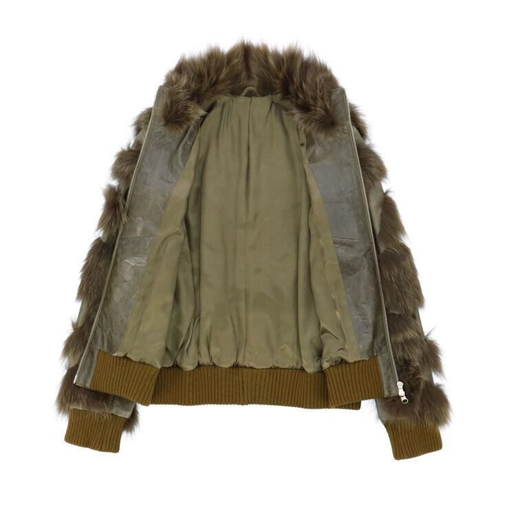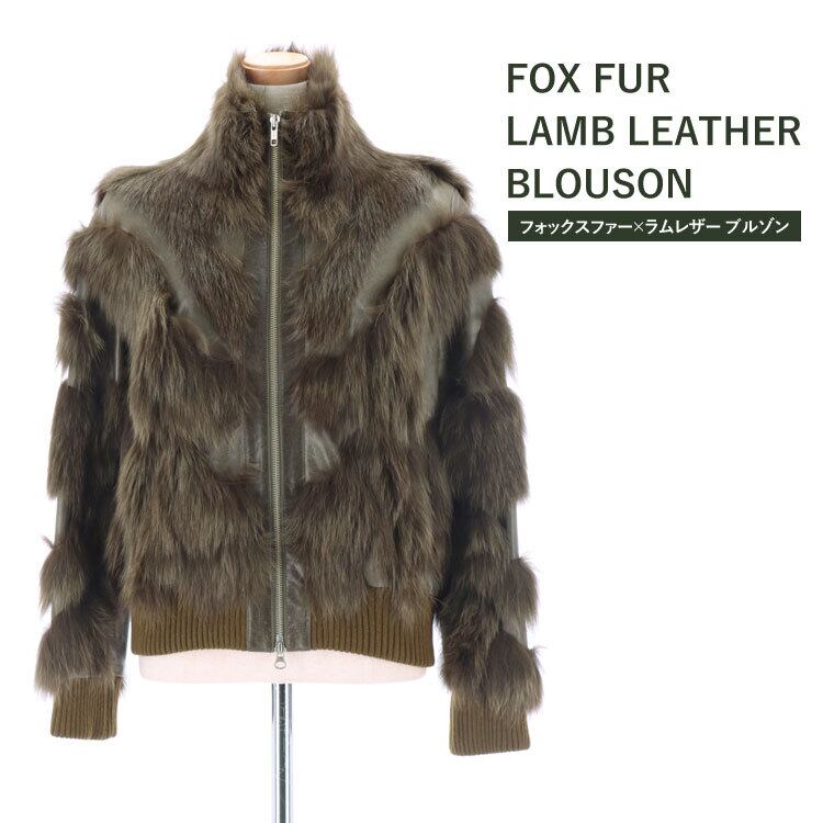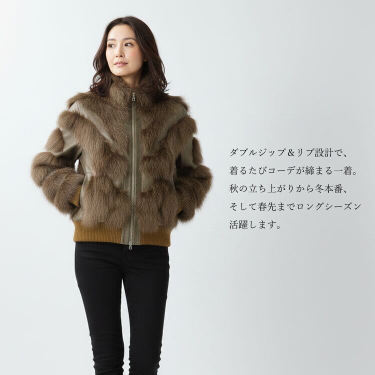フォックス ファー ・ ラム レザー ダブルジップ ブルゾン ジャケット ダークグリーン 送料無料 レディース ギフト プレゼント