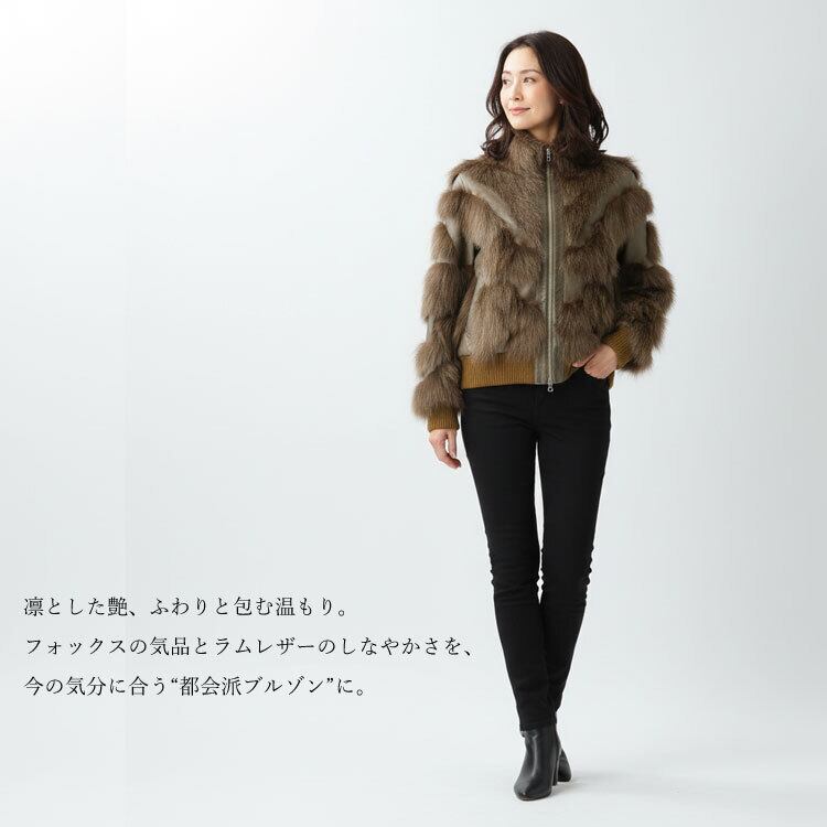 フォックスファーの存在感と柔らかなラムレザーを合わせることで、甘さに頼らず、きれいめに映えるモード感を実現したファーブルゾンです。裾と袖口のニットリブが冷気の侵入を抑えつつ、スポーティに偏りすぎない洗練されたバランス。ダブルジップで上下どちらからも開閉でき、シルエット調整やレイヤードの抜け感を見せるのにも効果的。デニムでラフに、ワイドパンツで端正に、ワンピースに羽織ってフェミニンにも。シーンを選ばず「着るだけで決まる」、魅力的な1着です。