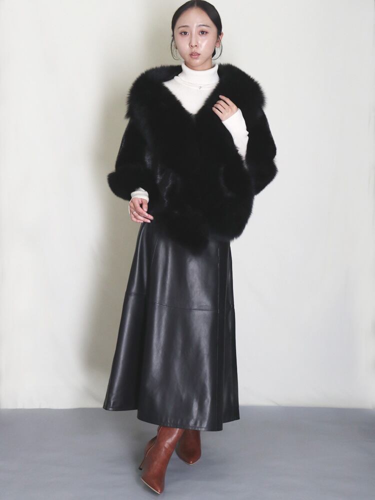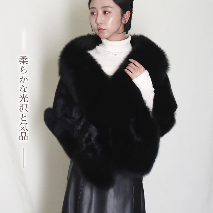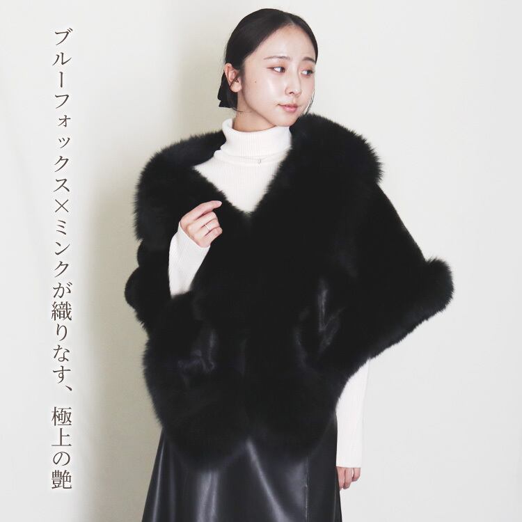 上質なブルーフォックスとミンクを贅沢に組み合わせた、存在感あふれるショール。