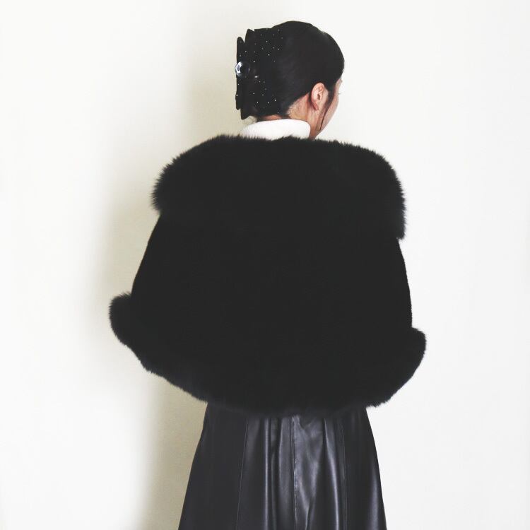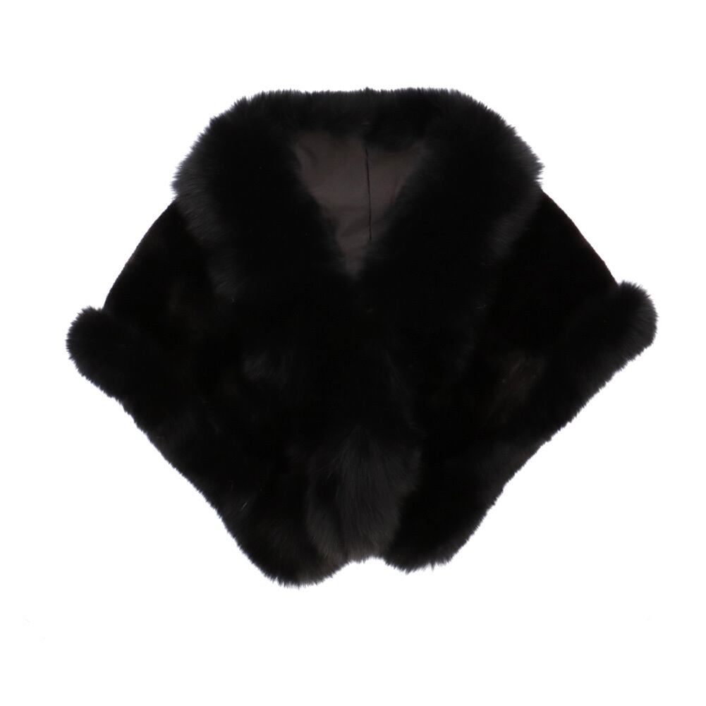 ショール ミンク ブルーフォックス リアルファー 毛皮 パーティー ブラック 大判 レディース 送料無料 ギフト プレゼント MF8W07