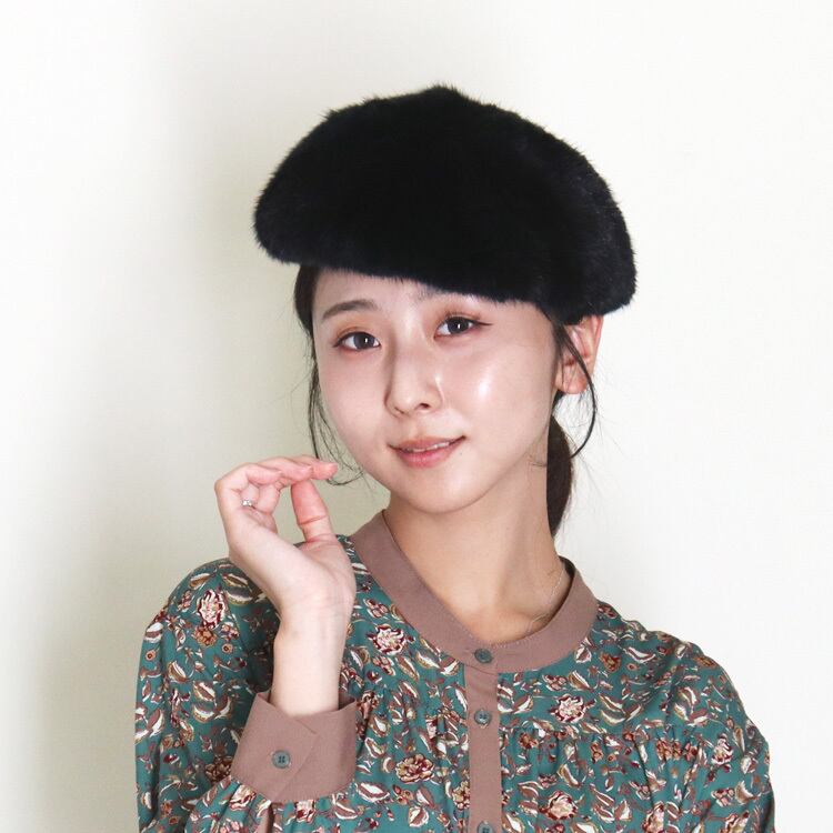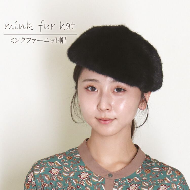 ミンク ファー ニット帽 ベレー帽 リアルファー ブラック レディース 送料無料 ギフト プレゼント MM0391
