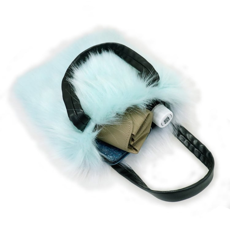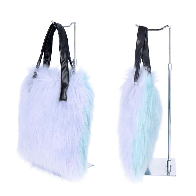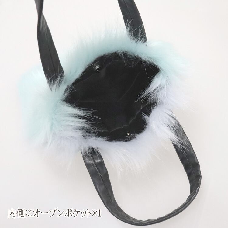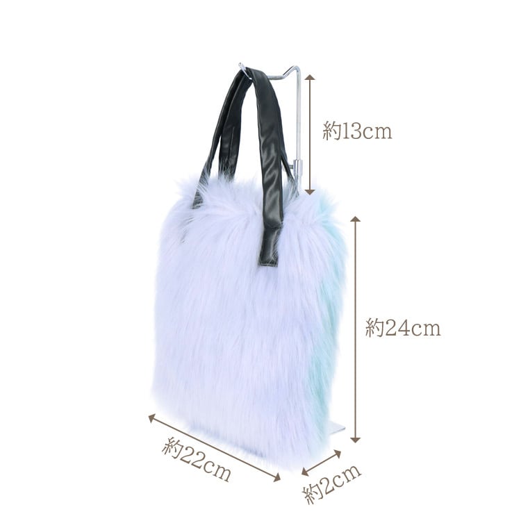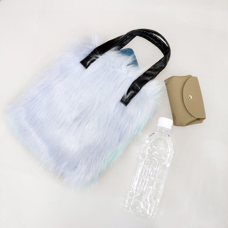 エコファー トートバッグ 縦型 フェイクファー 手提げ ブルー グレー リバーシブル レディース ギフト プレゼント POUSBN