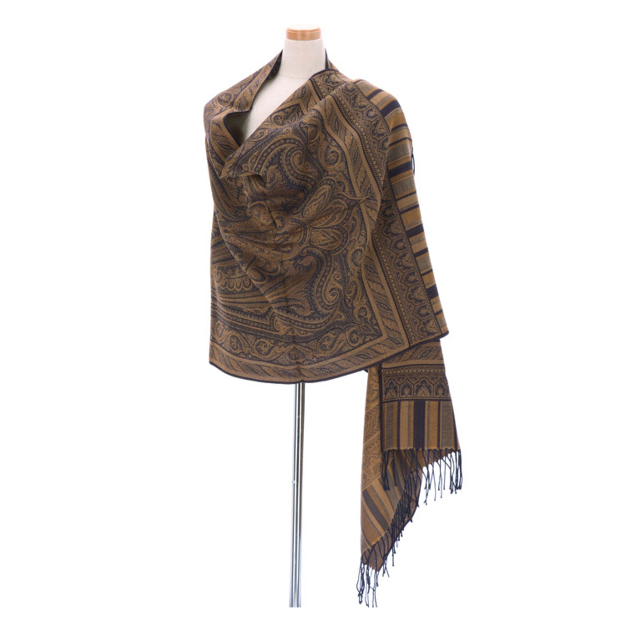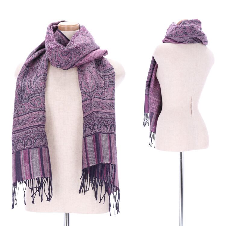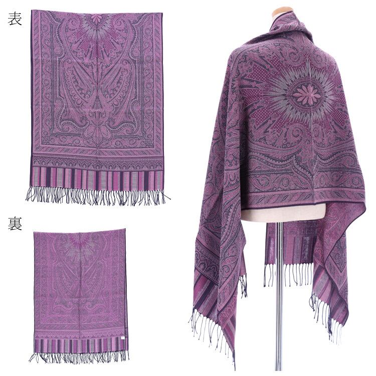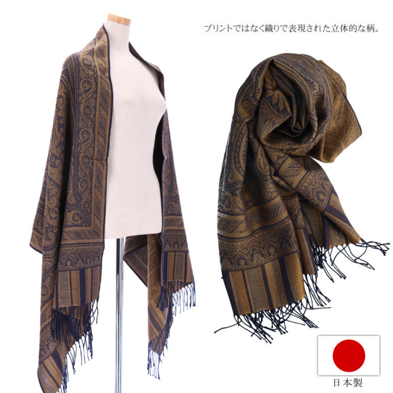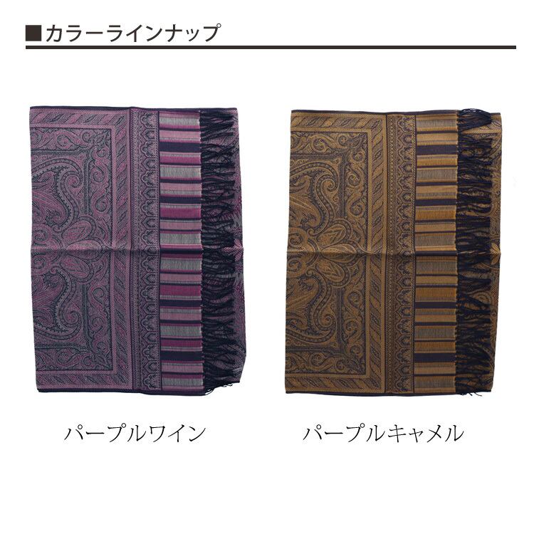 日本製 シルクストール ジャガード 大判ストール ウール ショール 送料無料 レディース メンズ 大人 ペイズリー ギフト プレゼント パープル キャメル ワイン WS2412