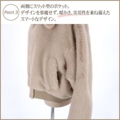 【サイズ(最大部を計測)】肩幅約50cm 身幅約65cm 着丈約54cm 袖丈約60cm 裄丈約80cm 【重さ】約1300g(ベージュ/ブラウントップのみ約1400g) 【ポケット】外側×2 【留め具】ダブルファスナー 【裏地】有り 【素材】ファー:ポリエステル / 裏地:ポリエステル 【生産国】中国